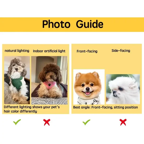 Provide 3-5 photos and select one to be used as the pet portrait reference.